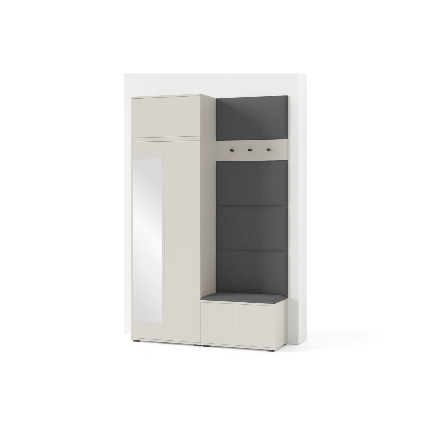 Popis produktu Predsieňová stena BIANCO IV So zrkadlom Sivá