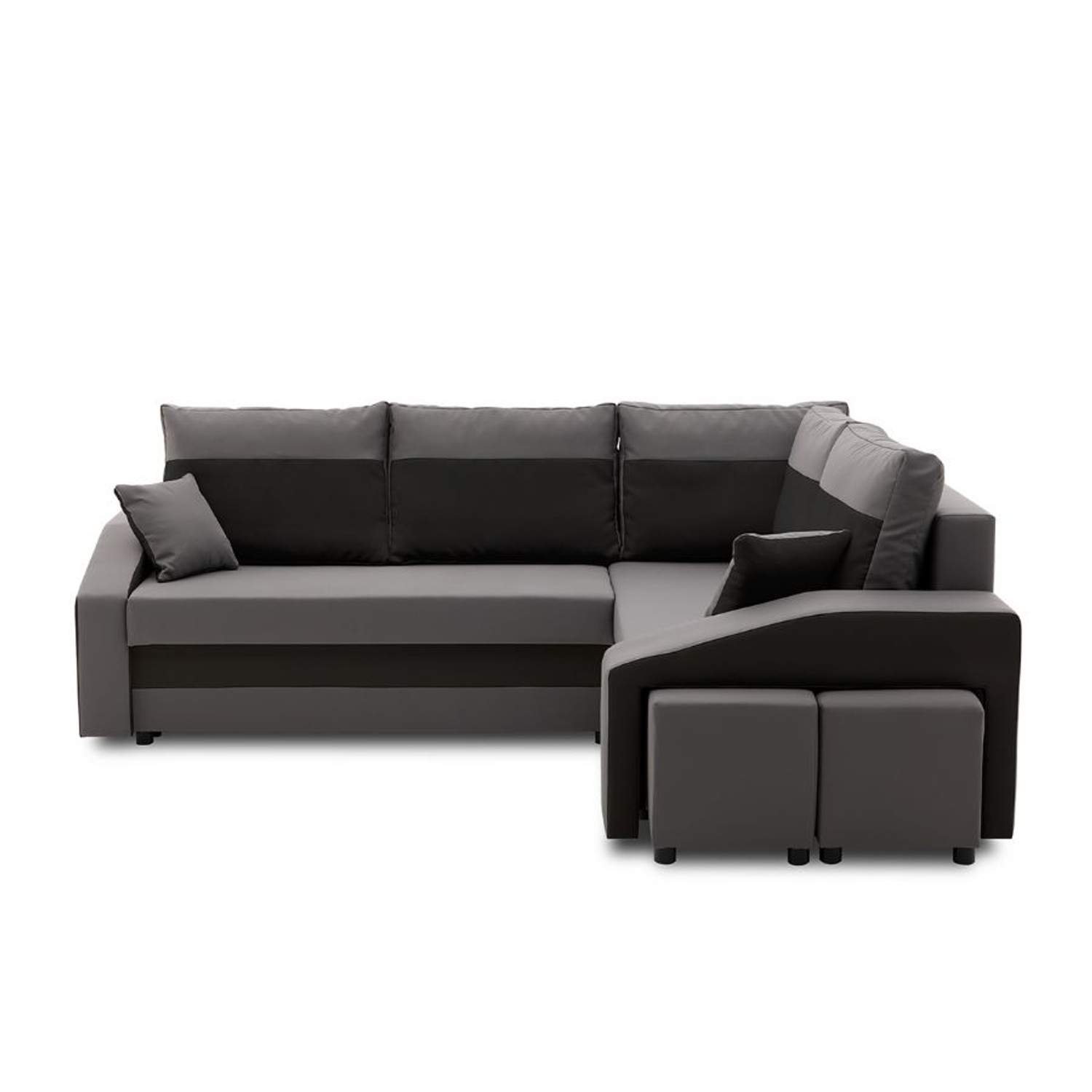 Popis produktu Rozkladacia rohová sedacia súprava GRANDE s taburetkami a poličkou model 2